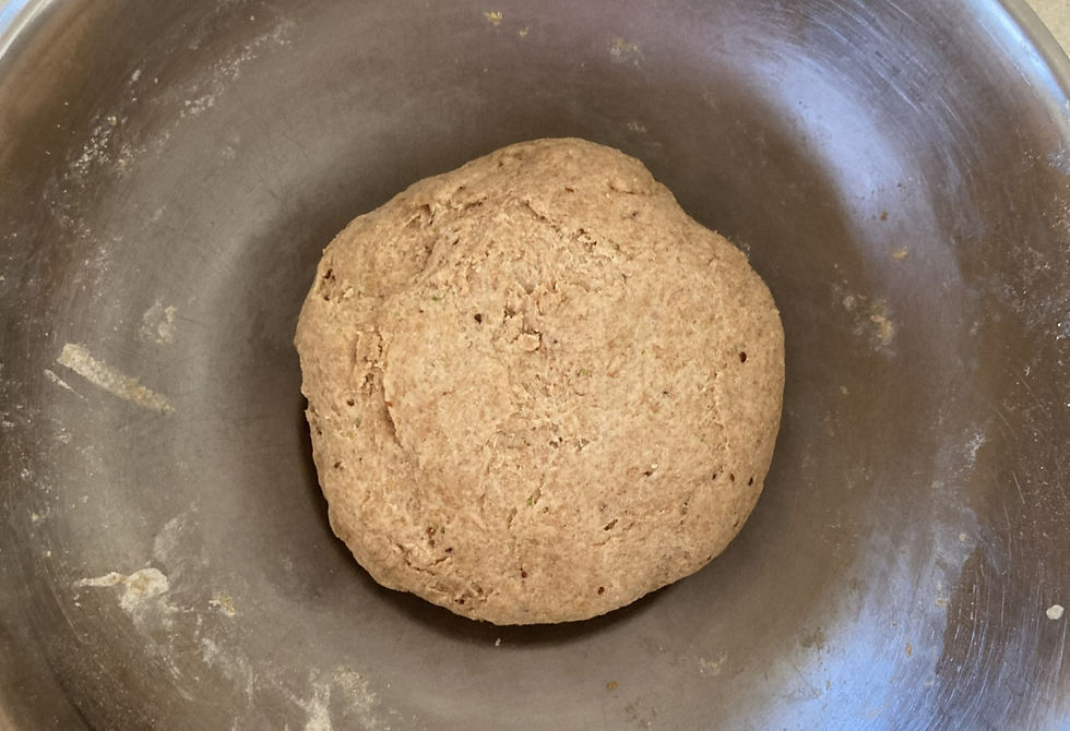 4) Mix together. The dough should be slightly tacky so it can more easily be rolled into balls.
